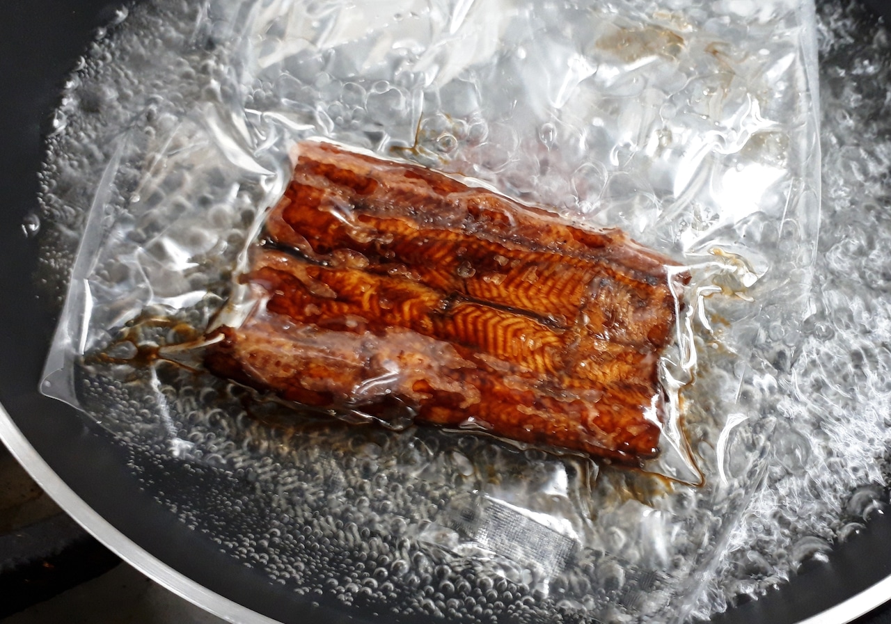蒲焼は真空冷凍になっていますので、袋のまま3~4分湯せんで温めてお召し上がり下さい。温かいご飯をご用意いただき、付属のタレをかけ、温めた蒲焼をのせると、より一層美味しくお召し上がり頂けます。